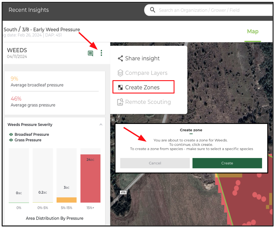 - When creating a zone map, select which weeds to target based on the insights provided.