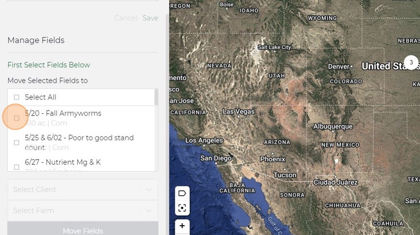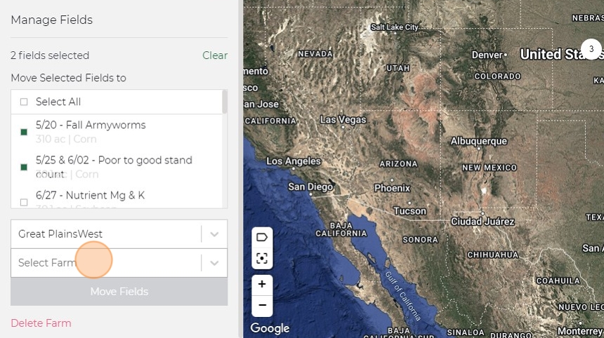12. Click the farm you want to move the fields to.