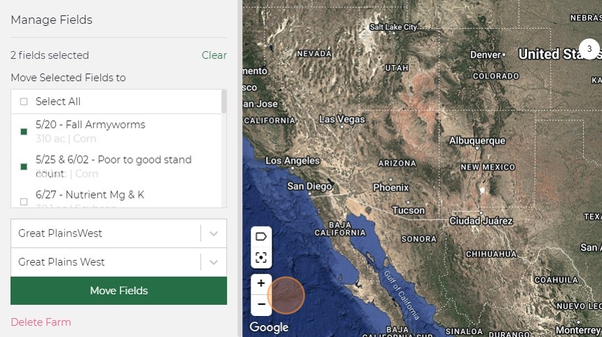 13. Click "Move Fields" and refresh your page and farms/fields will be moved.